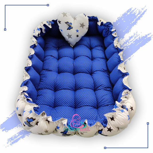 Rectangle baby tub bed with a heart pillow (Blue and White)