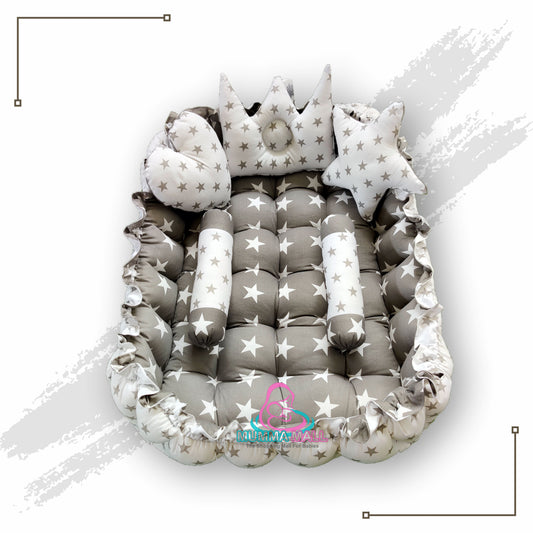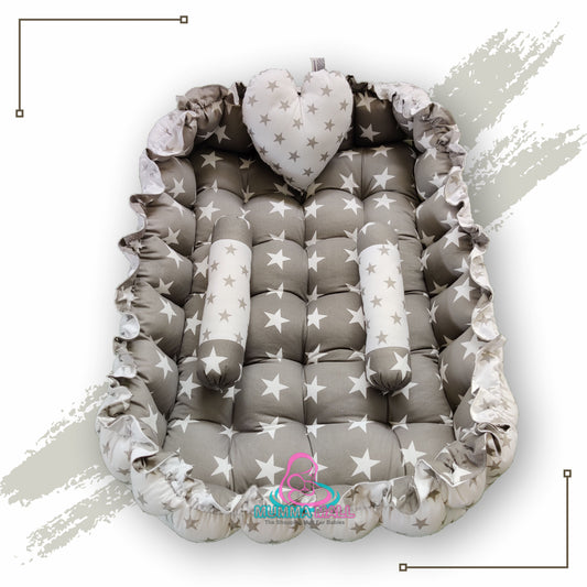 Rectangle baby tub bed with a heart pillow (Grey and White)