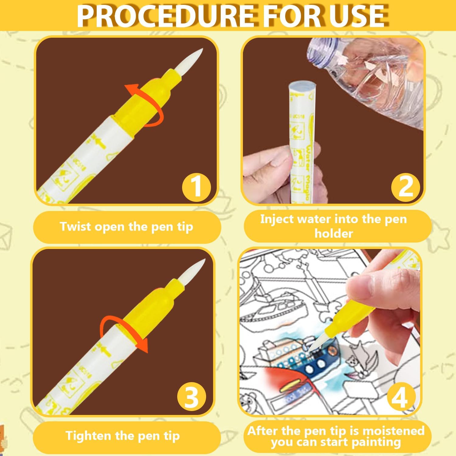 Wait 3-10 minutes after painting, the drawings will vanish like magic. Painting with water ensures neatness