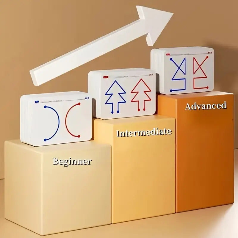 - Offers 20 unique designs (10 double-sided cards) for progressive learning