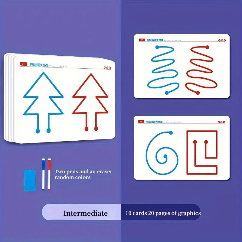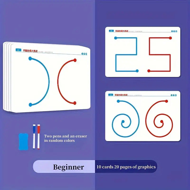 20-Sheet Action Exercise Coordination Development Set for Whole Brain Balance, Focus Enhancement Tool, Uncharged, Cardboard Material, No Battery, Three Difficulty Levels