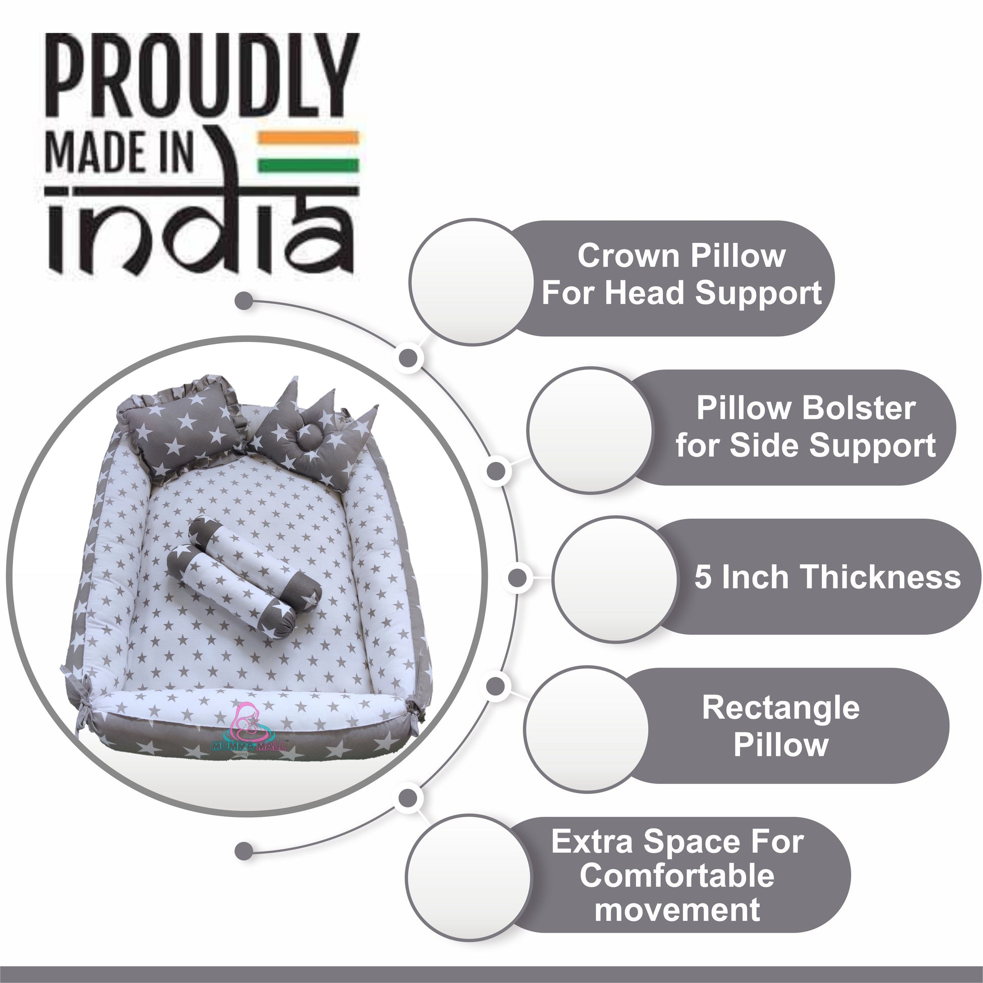 *We believes safety is the topmost priority for your baby: This baby bed is made of air permeable and soft cotton material, furthermore it is filled with Virgin Indian reputed brand to give your baby a safe comfortable time R-Recron makes the fiber.
