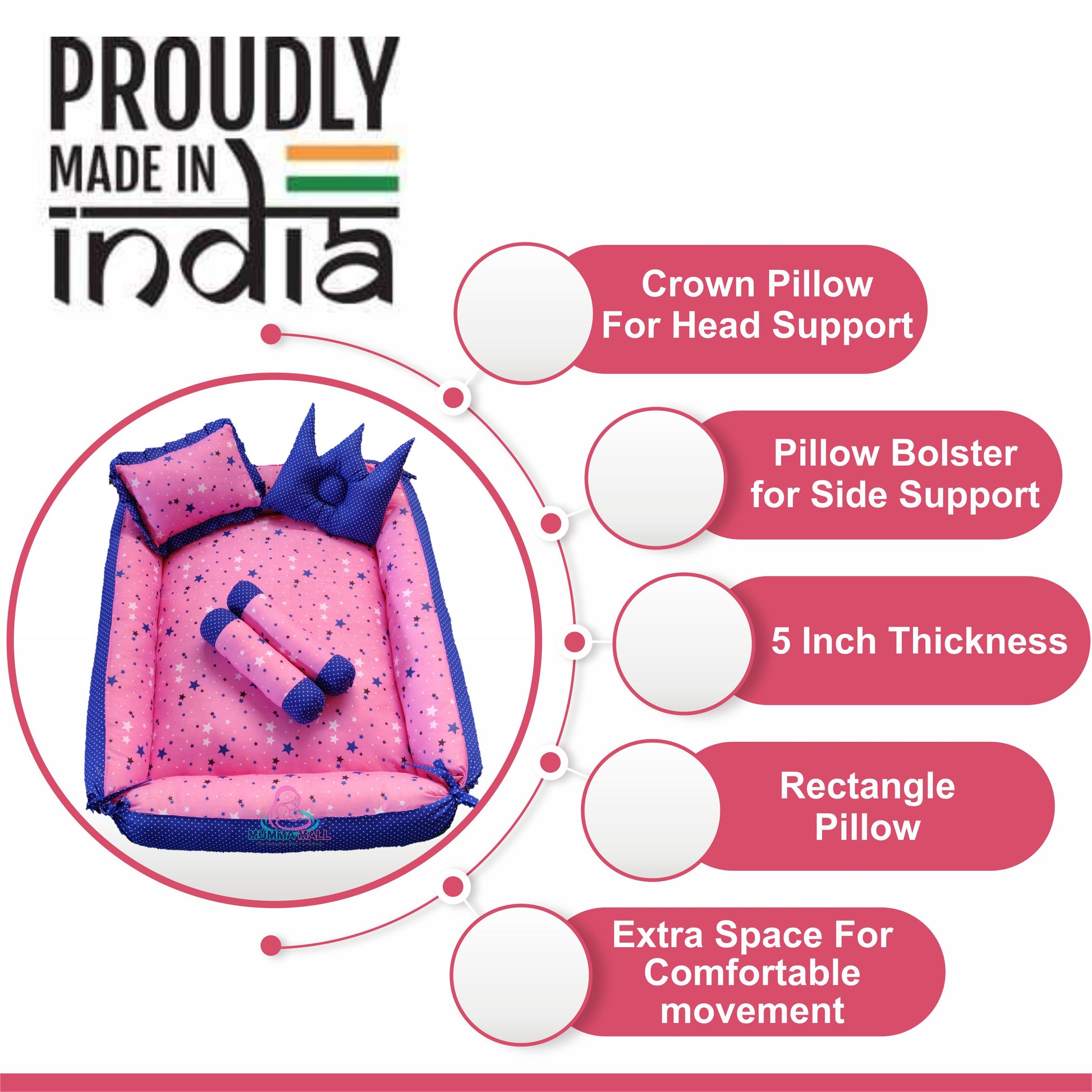 *We believes safety is the topmost priority for your baby: This baby bed is made of air permeable and soft cotton material, furthermore it is filled with Virgin Indian reputed brand to give your baby a safe comfortable time R-Recron makes the fiber.