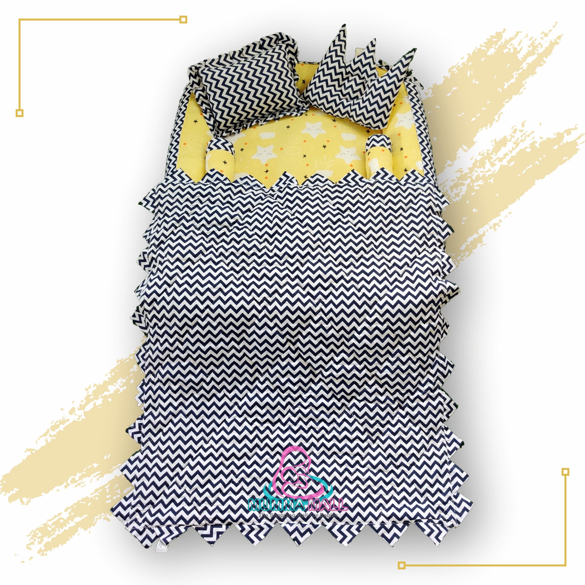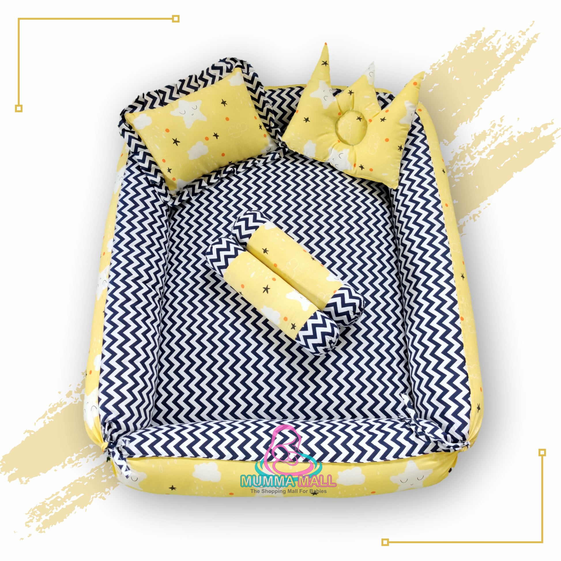 Baby box mattress with blanket and set of 4 pillows as neck support, side support and toy (Yellow and Black)