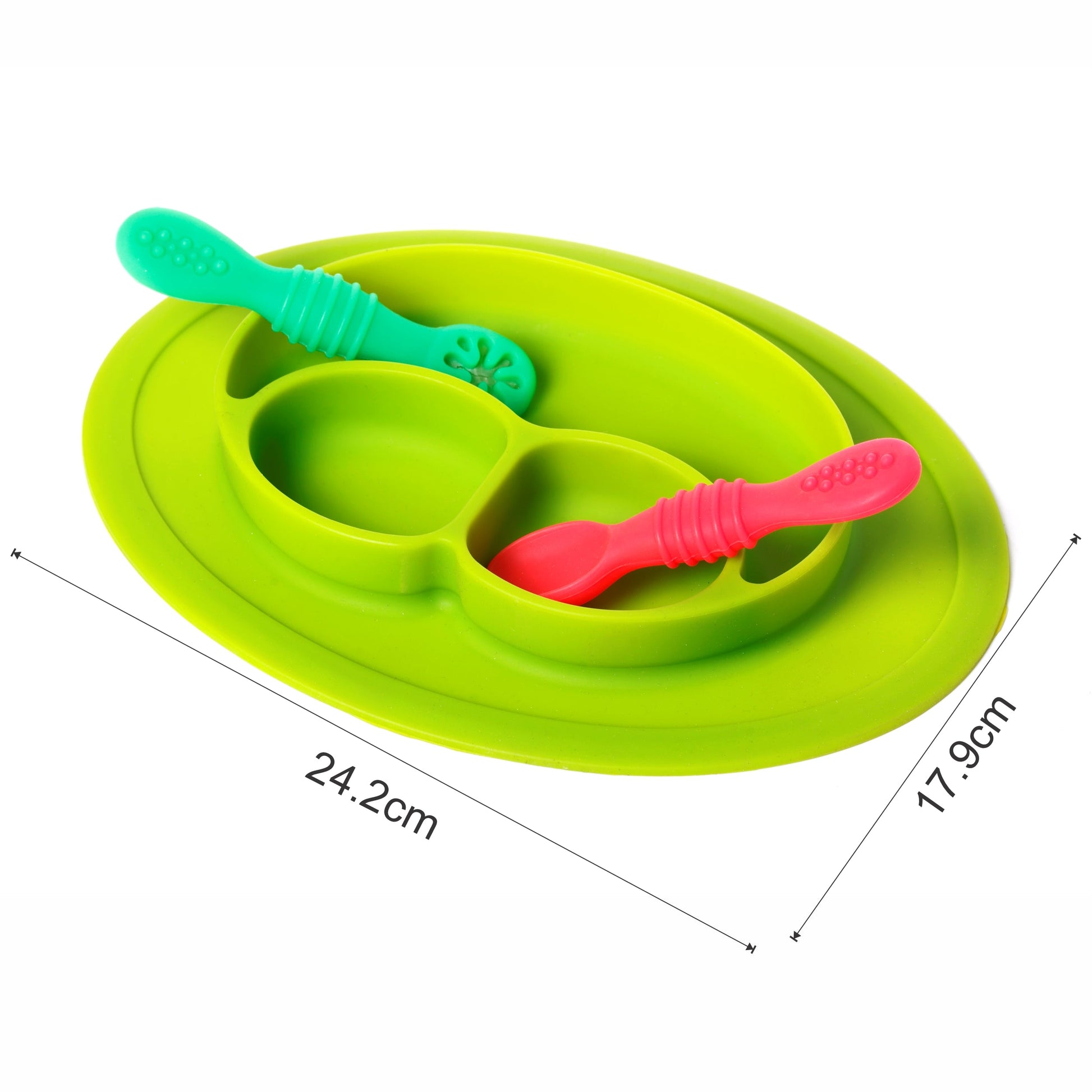 Baby Food Oval Tray - Silicon Plate with Multiple Compartments & Two Spoons