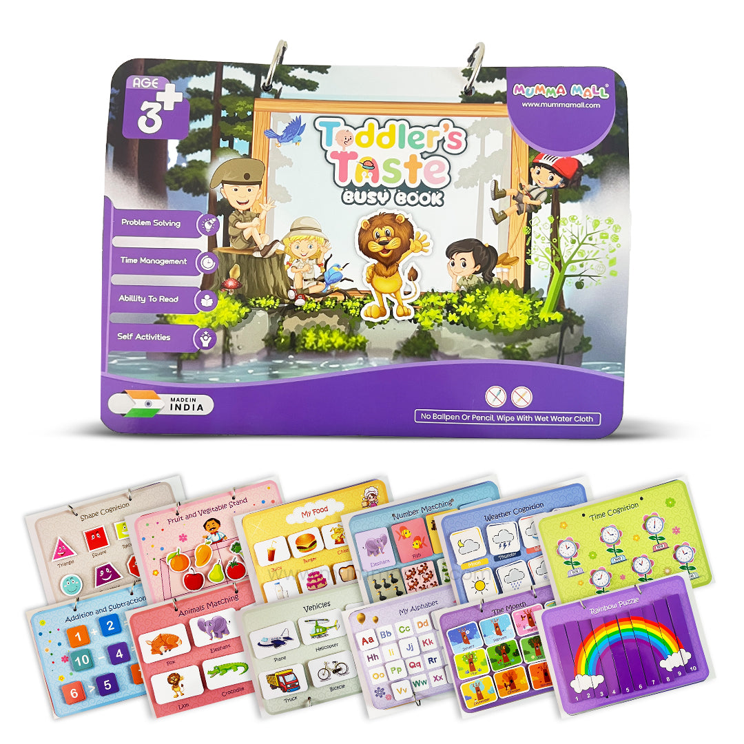 Mumma Mall® Toddler's Taste Busy Book – Reusable Learning Binder for Kids (Ages 2–5) with Velcro Activities & Fine Motor Skill Games