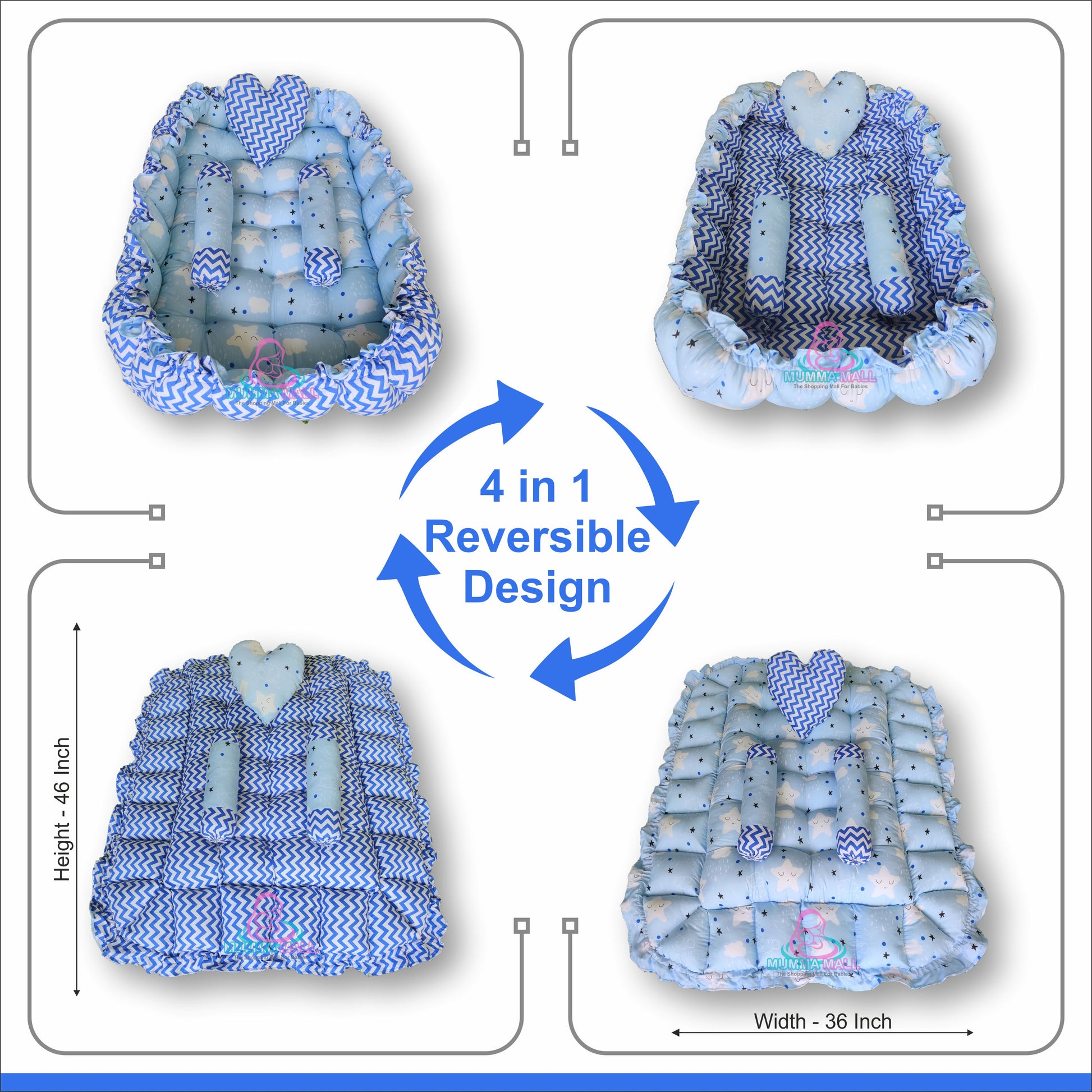 *Side Borders: Create a large soft side border inside the baby bed that acts as a safety barrier for the baby, even it's play move during sleep