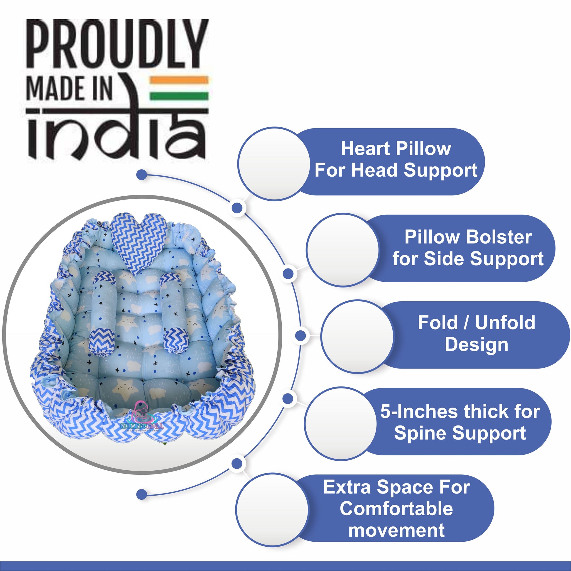 *We believes safety is the topmost priority for your baby: This baby bed is made of air permeable and soft cotton material, furthermore it is filled with Virgin Indian reputed brand to give your baby a safe comfortable time R-Recron makes the fiber.