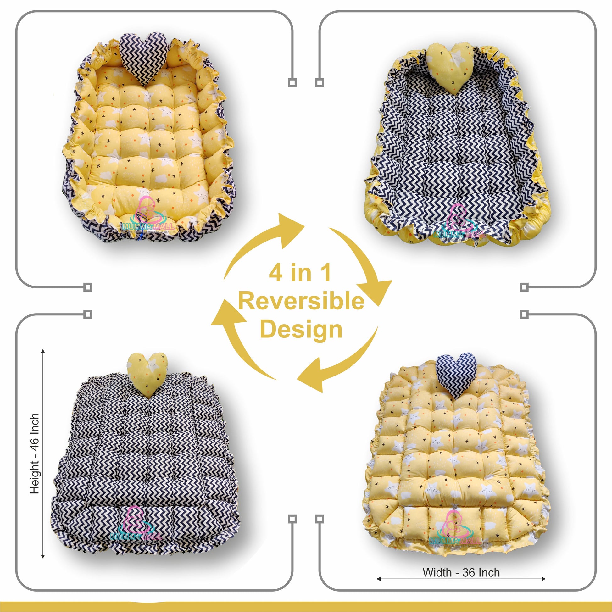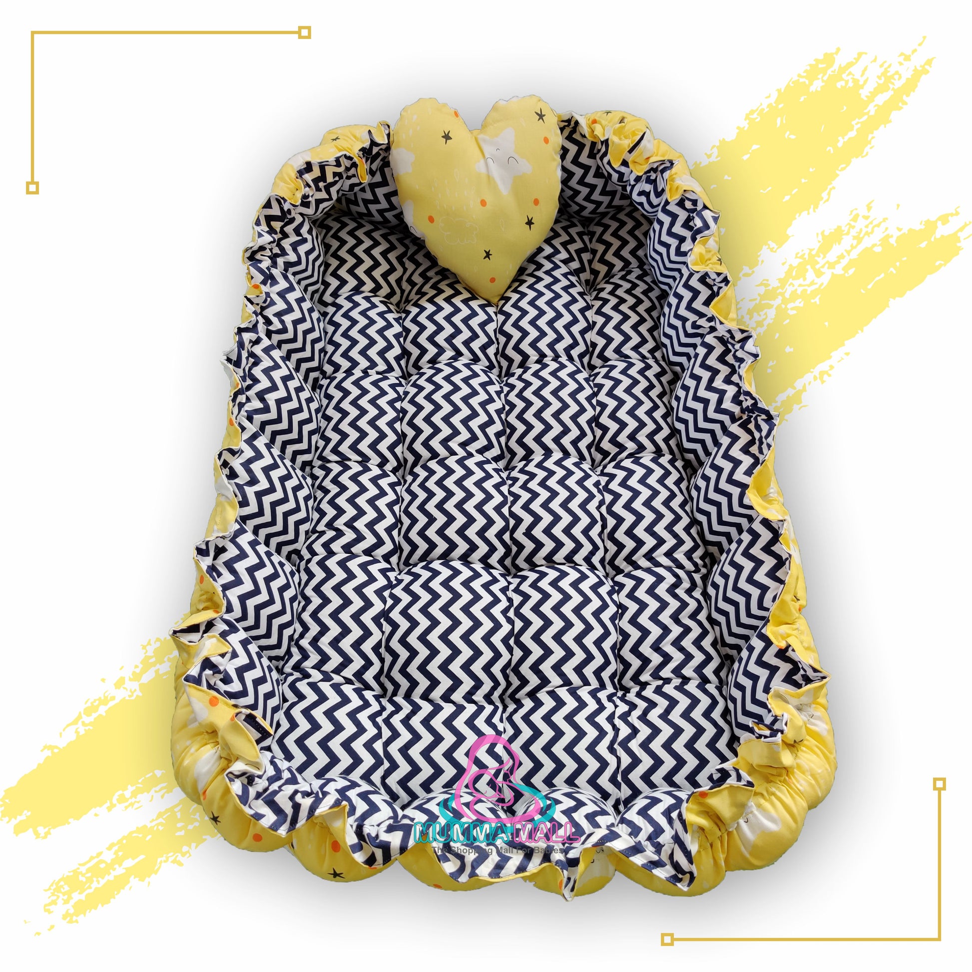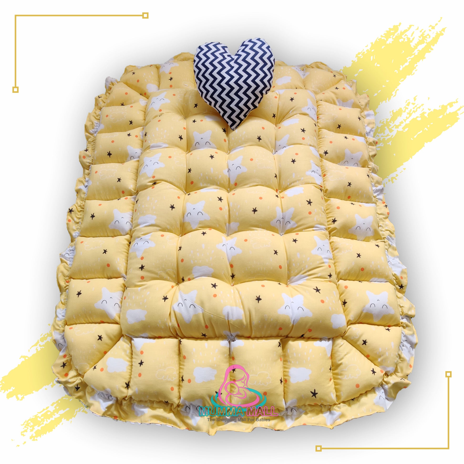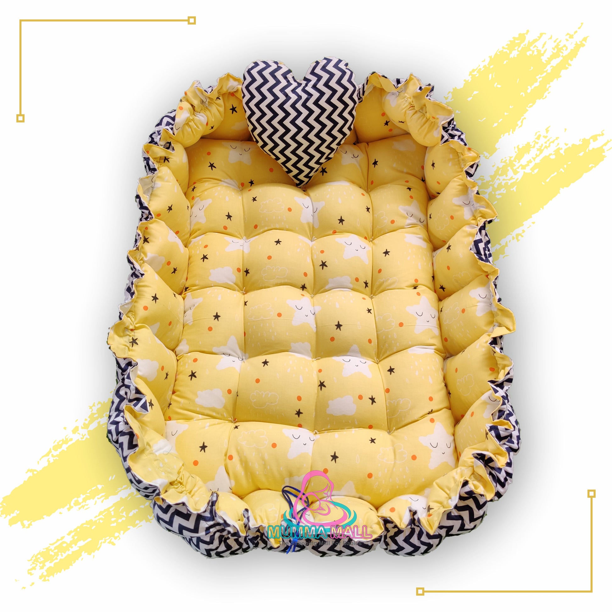 Rectangle baby tub bed with a heart pillow (Yellow and Black)