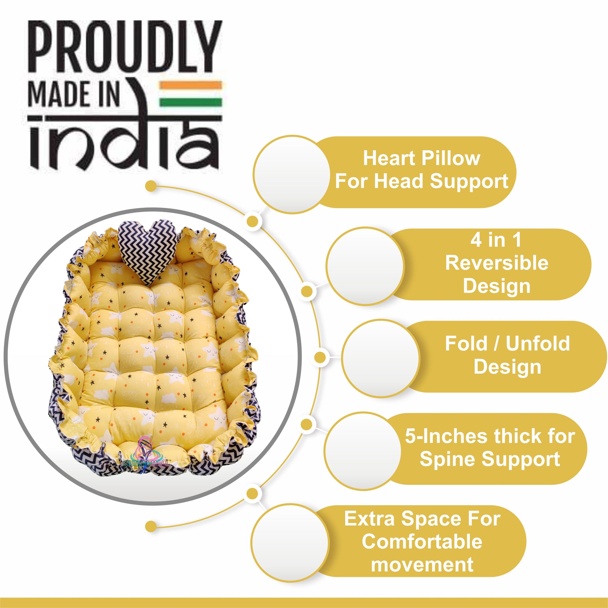 *We believes safety is the topmost priority for your baby: This baby bed is made of air permeable and soft cotton material, furthermore it is filled with Virgin Indian reputed brand to give your baby a safe comfortable time R-Recron makes the fiber.