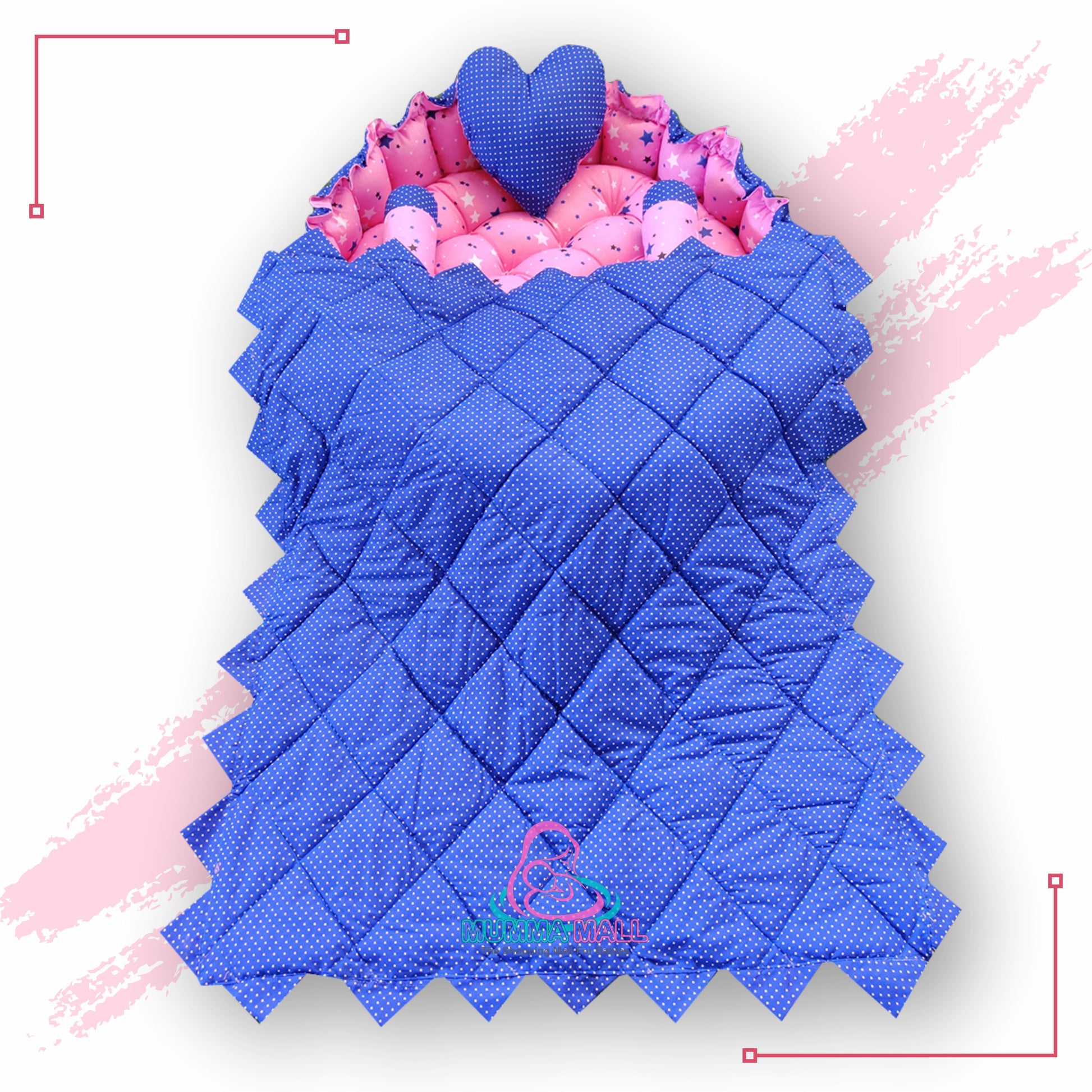 Rectangle baby tub bed with blanket and set of 5 pillows as neck support, side support and toy (Pink and Blue)