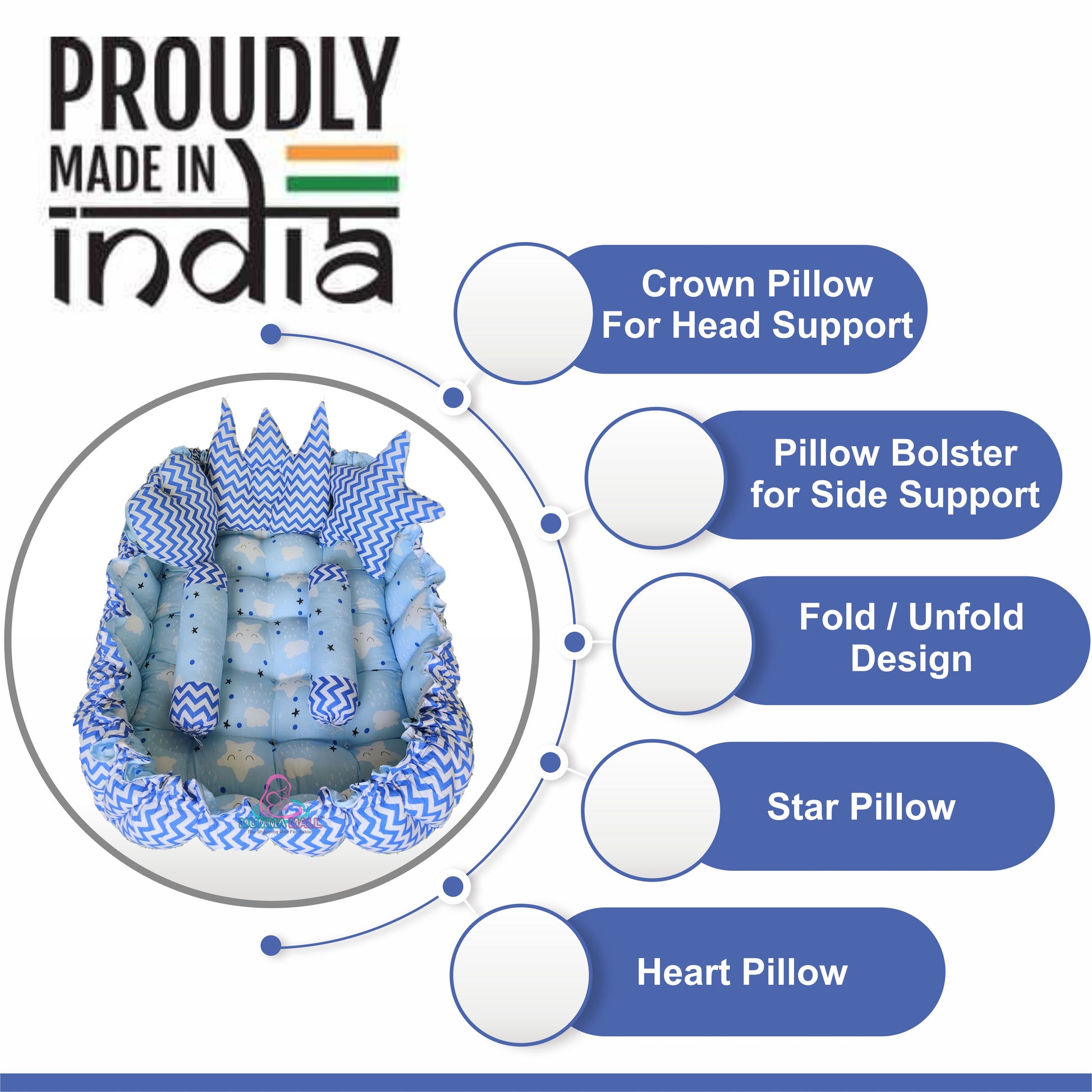 *We believes safety is the topmost priority for your baby: This baby bed is made of air permeable and soft cotton material, furthermore it is filled with Virgin Indian reputed brand to give your baby a safe comfortable time R-Recron makes the fiber.
