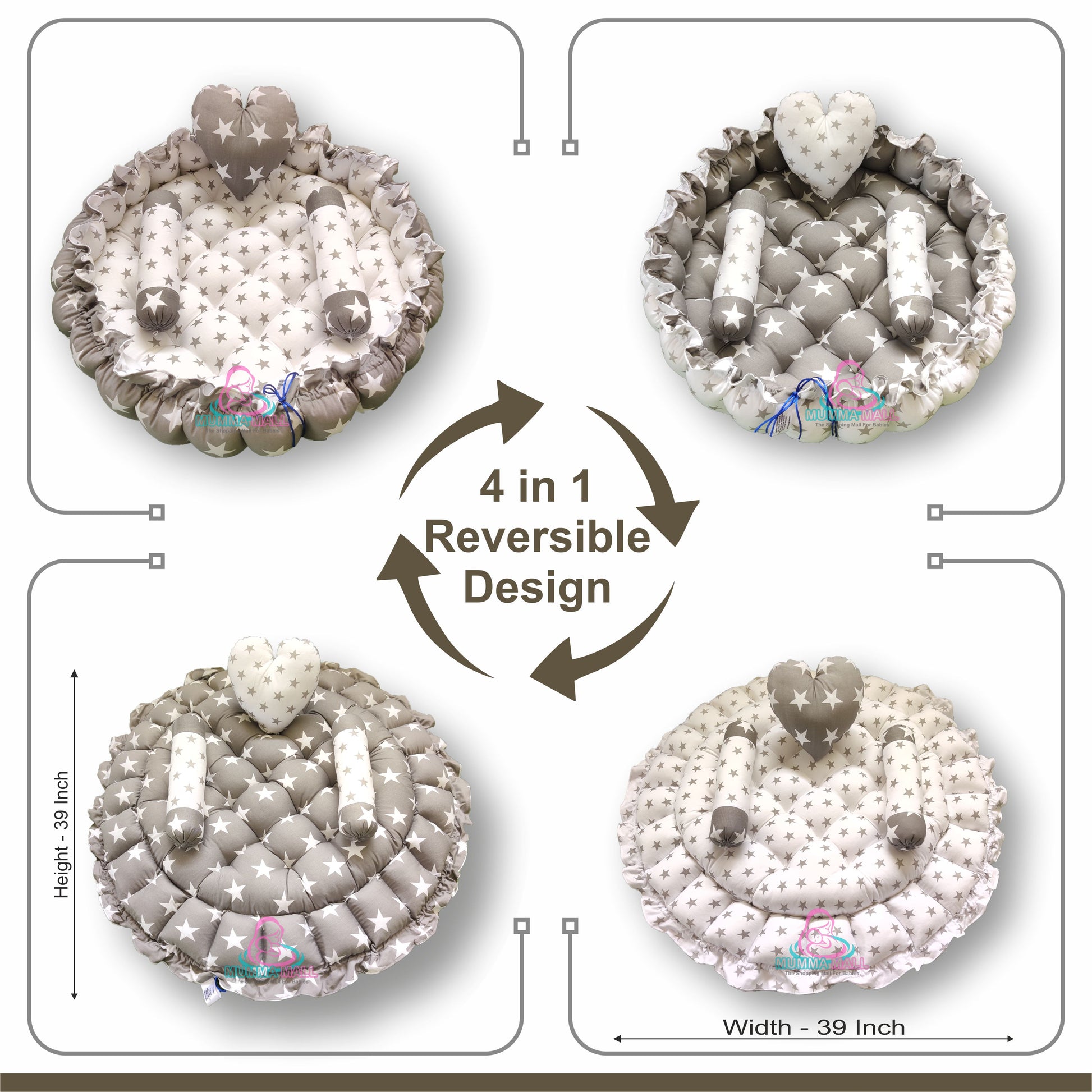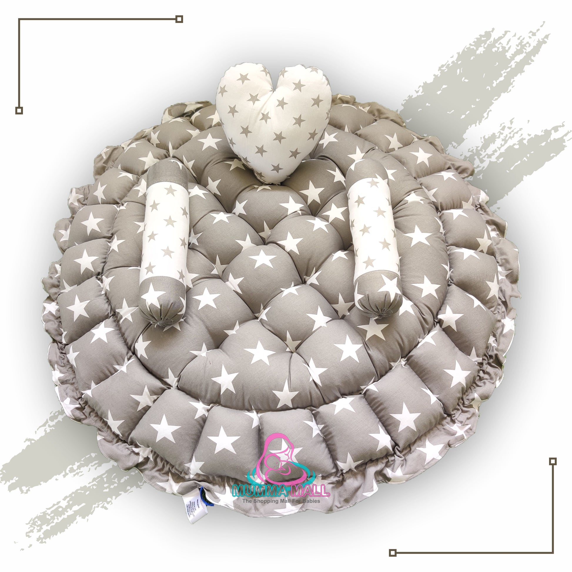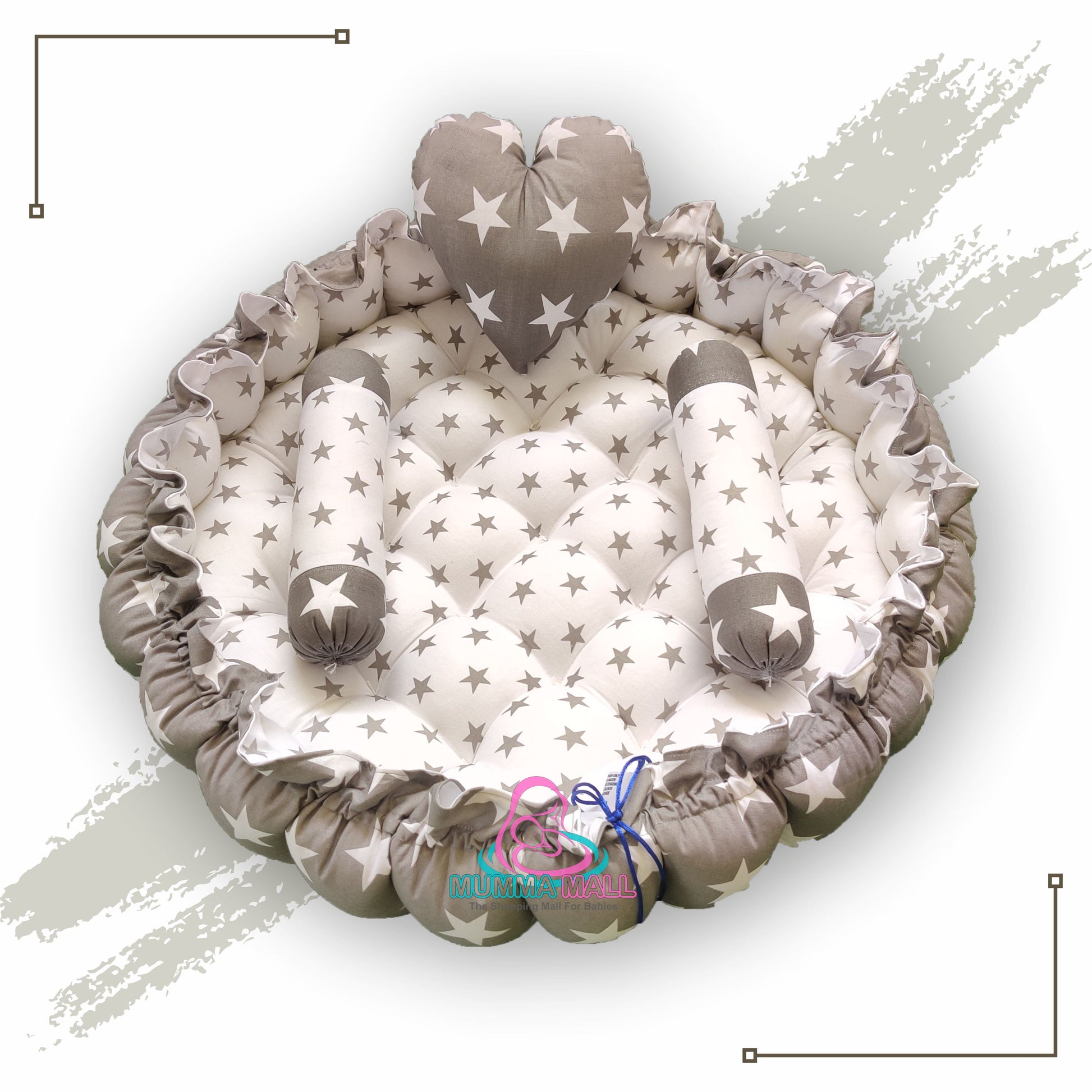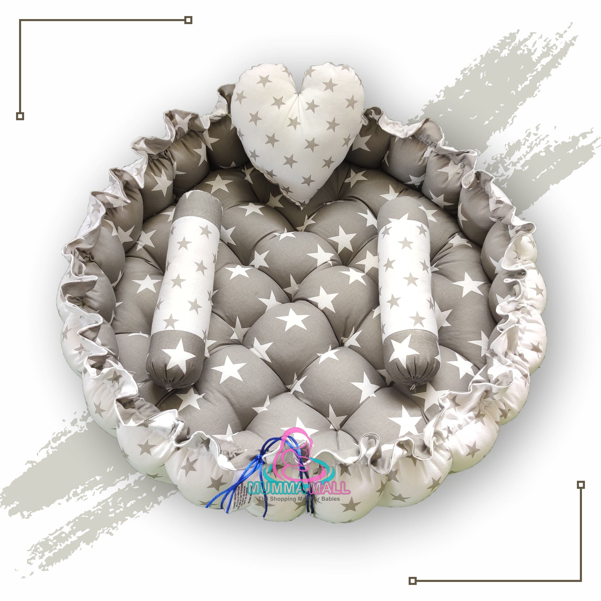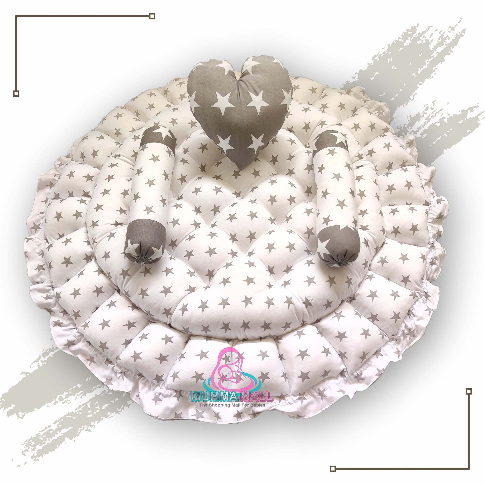 components involved-Round Baby Bedding Tub with 1 Heart Shape Baby Pillow and pair of Bolster