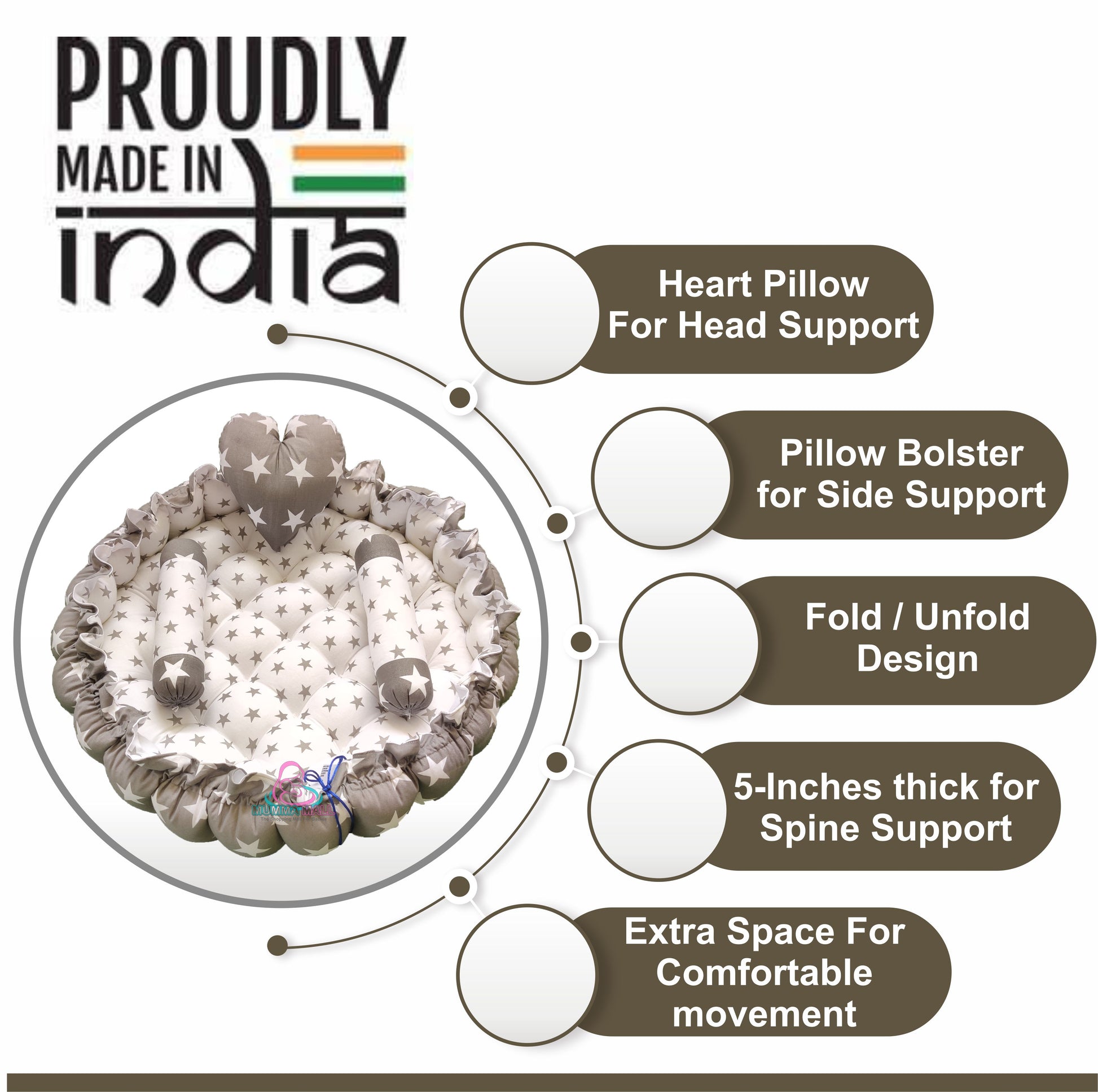 *We believes safety is the topmost priority for your baby: This baby bed is made of air permeable and soft cotton material, furthermore it is filled with Virgin Indian reputed brand to give your baby a safe comfortable time R-Recron makes the fiber.