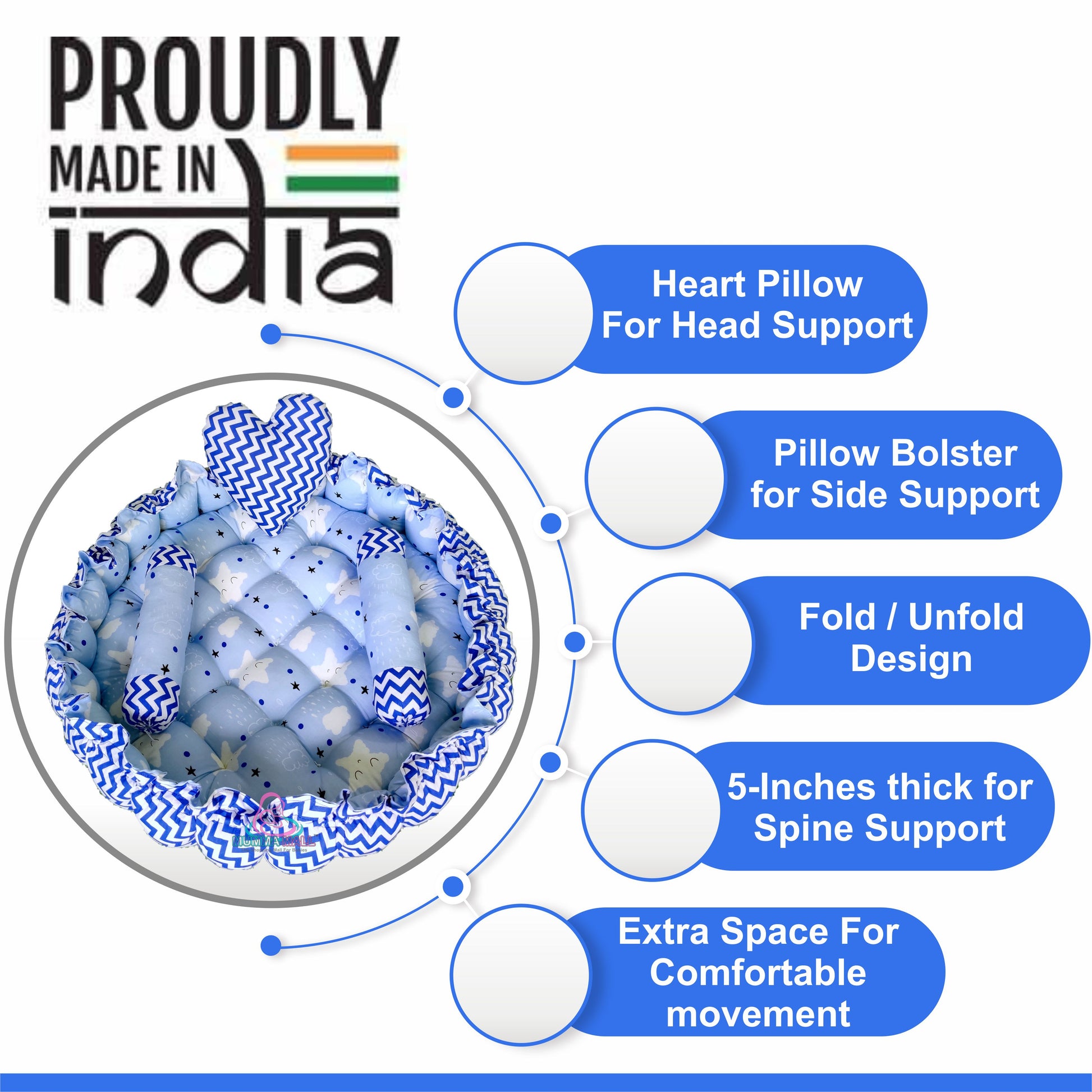 *We believes safety is the topmost priority for your baby: This baby bed is made of air permeable and soft cotton material, furthermore it is filled with Virgin Indian reputed brand to give your baby a safe comfortable time R-Recron makes the fiber.