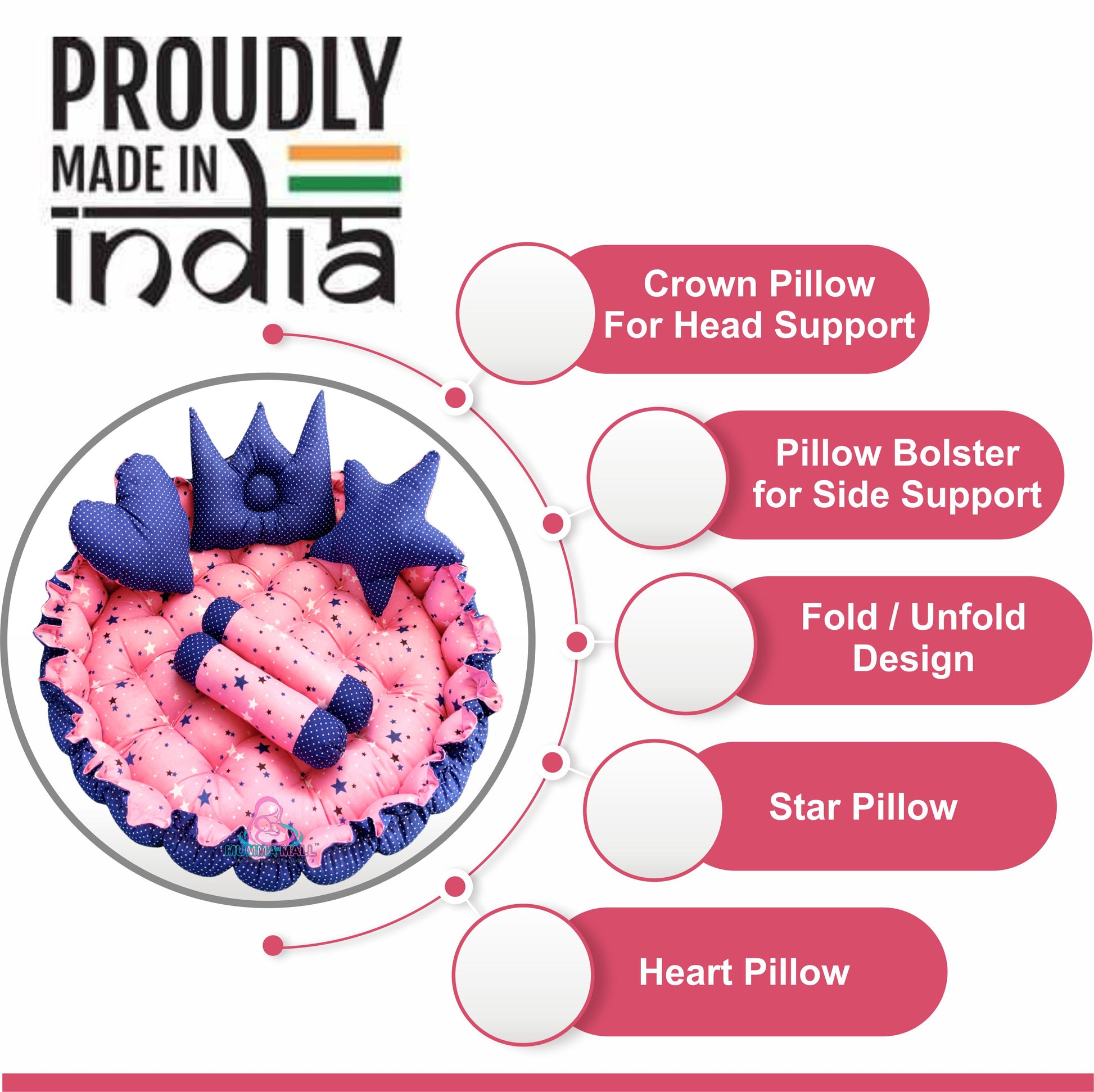*We believes safety is the topmost priority for your baby: This baby bed is made of air permeable and soft cotton material, furthermore it is filled with Virgin Indian reputed brand to give your baby a safe comfortable time R-Recron makes the fiber.
